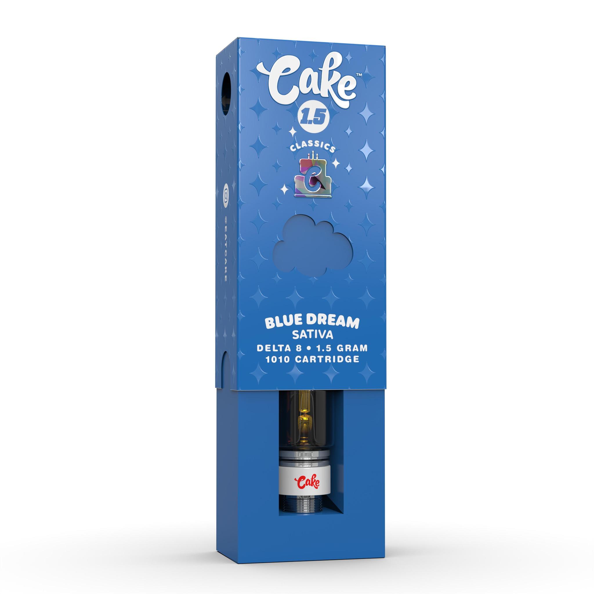 Cake – Delta 8 1010 Vape Cartridge 1.5g – Blue Dream 5-pk Display (MSRP $39.95)
